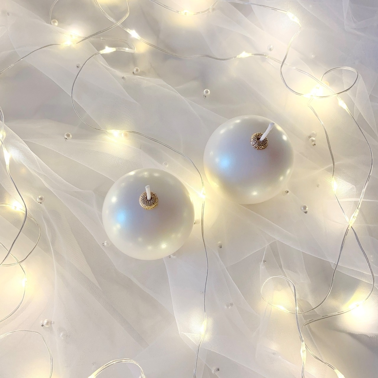 まるでオーナメントのような、オーロラに輝くつやつやのまんまるキャンドルが出来上がりました。